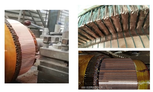 電機(jī)換向器表面采用精密加工,確保碳刷和換向器的接觸良好,提高碳刷和電機(jī)使用壽命。(碳刷磨損產(chǎn)生的導(dǎo)電粉塵引起電機(jī)整機(jī)絕緣下降,換向片打火及損壞)